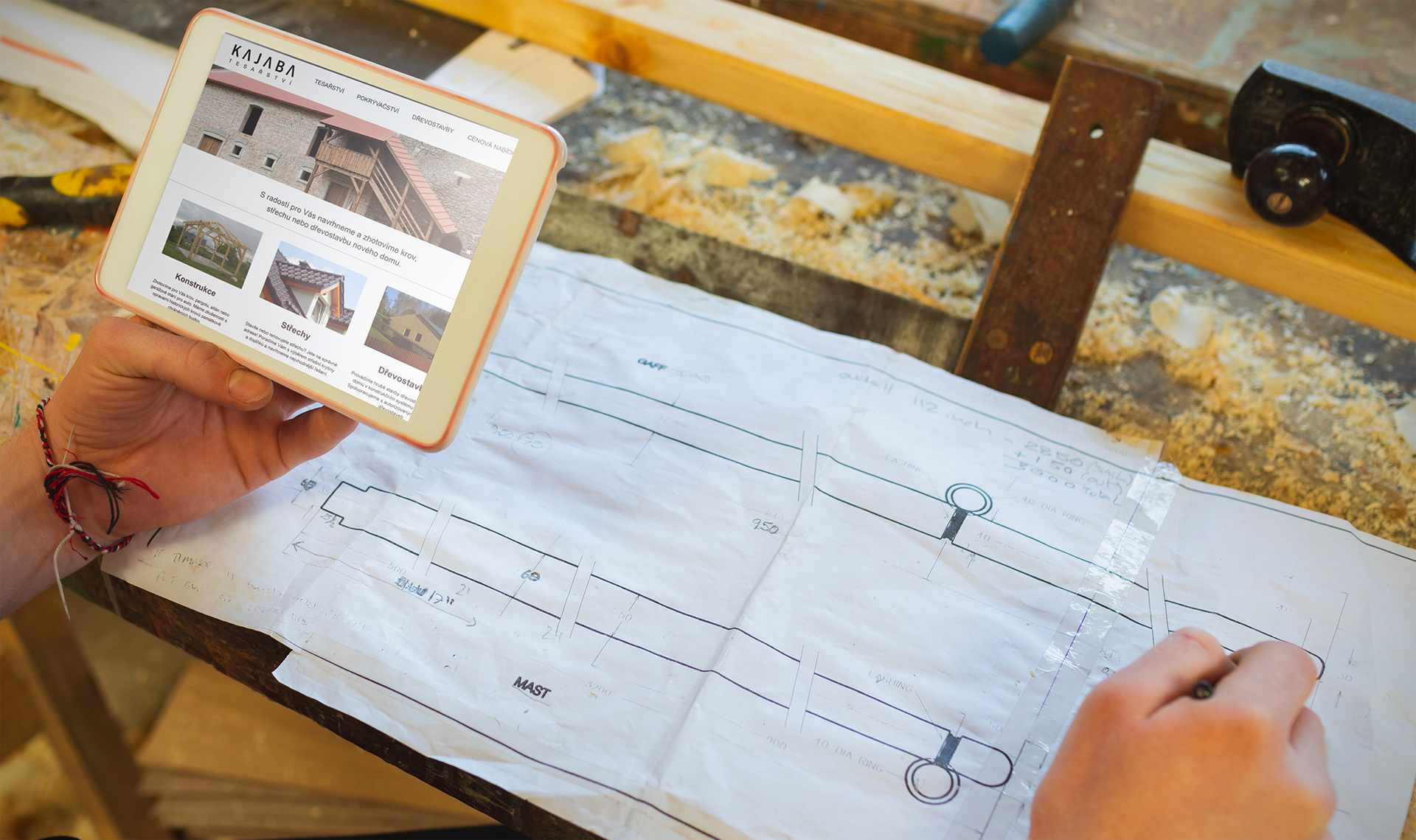 Pro firmu Tesařství Kajaba jsem vytvořila kompletní vizuální identitu, která spojuje tradiční řemeslo s čistým, moderním designem. Hlavním motivem návrhu se stalo upravené písmo, konkrétně absence středu písmene A, čímž vznikl jednoduchý, ale výrazný prvek připomínající tesařskou kozu – základní nástroj každého tesaře.